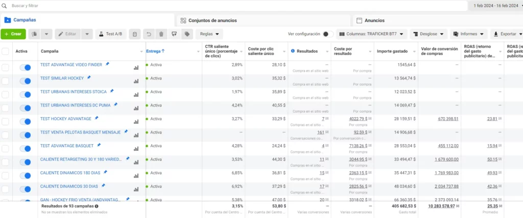 Y estos son los números de las campañas que estuvo manejando él para su cliente.