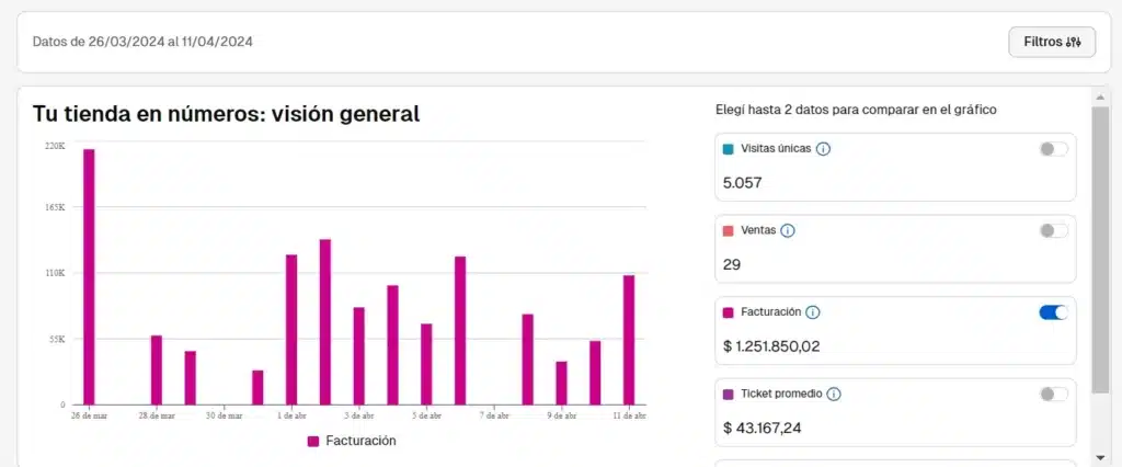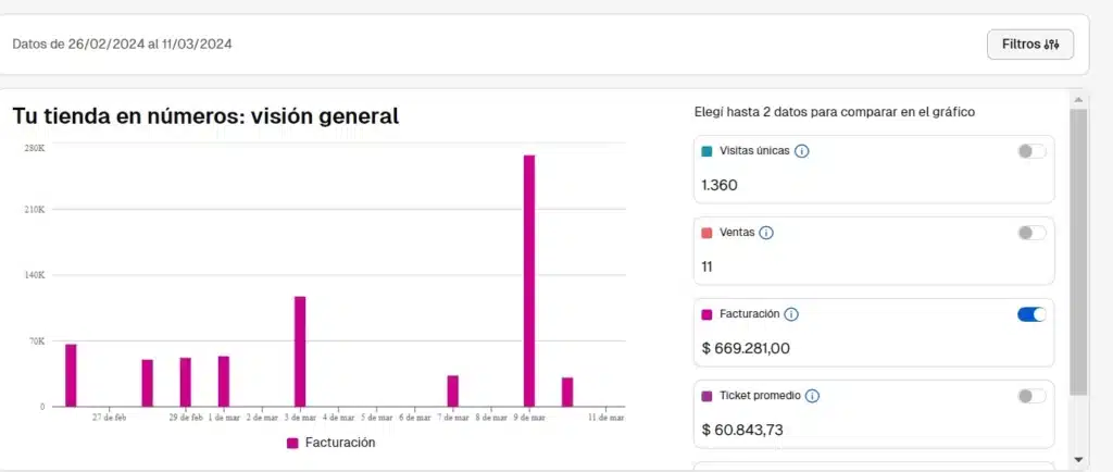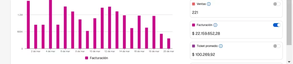 Estos resultados son los que consigue Bauti para este cliente… Y como puedes ver en los gráficos, esto fue del 1 de marzo al 20 de marzo 😉