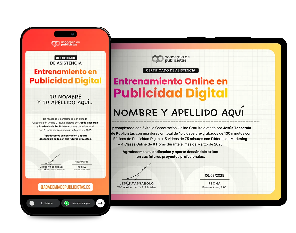 ¡Felicidades! Ya puedes descargar tu Certificado de Asistencia y Finalización de nuestro Entrenamiento Online en Publicidad Digital en Redes Sociales... Si vas a capacitarte, que sea con respaldo... Sumálo a tu CV, mostráselo al mundo y destacate...