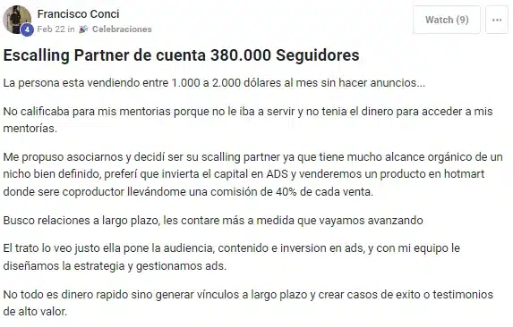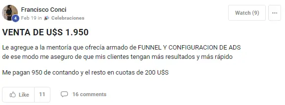 Durante su formación con nosotros, Conci aprendió utilizando casos reales, y uno de los momentos más impactantes fue cuando participó en un lanzamiento que generó $25,000 USD en solo una semana.